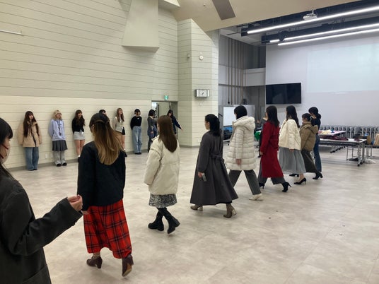 初めてモデル経験をする学生が多いため、「岩崎学園 横浜fカレッジ」のファッションライフデザイン学科の学生によるウォーキング指導も事前に行いました。ヘアメイクは、「岩崎学園 横浜fカレッジ」の美容師科の学生が担当します。