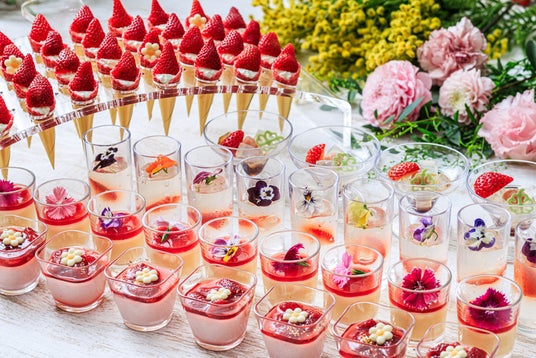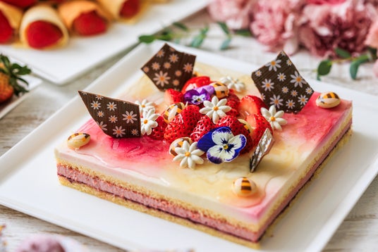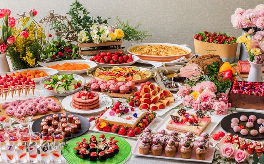 今年のスイーツブッフェは、「花が咲き誇る春の庭」をイメージし、いちごをたっぷり使用したスイーツに、エディブルフラワーなどを散りばめた色とりどりのスイーツが会場を華やかに彩ります。