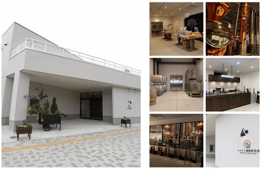 美術館を彷彿とさせるスタイリッシュな外観やエントランスが特徴の建物。店内の飲食カウンターや蒸溜窯のある工場内、貯蔵庫の撮影も可能です。