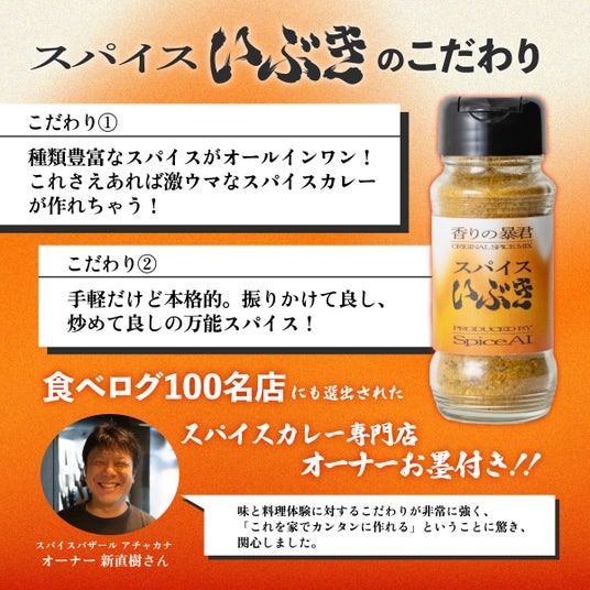 “とにかくカンタンに、バカウマいものを”をコンセプトに、オリジナルスパイスの企画開発・販売を手掛ける株式会社Spice AI(本社:東京都渋谷区、代表取締役:平木隆太)は、2024年7月19日(金)に発売した万能スパイス「スパイスいぶき」を、このたび「Amazon」と「Qoo10」のECモールで販売を開始しました。公式オンラインショップに加え、新たな販売チャネルを拡大し、より多くの方々に“キマる”体験を届けます。