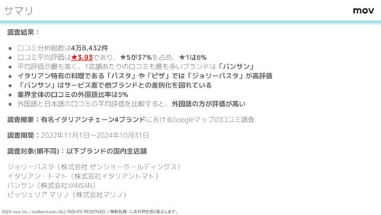 AI店舗支援SaaS「口コミコム」を運営する株式会社mov(代表取締役:渡邊 誠、本社:東京都渋谷区、以下mov)では、『口コミコム』の分析機能を用いたレポートを公開しました。