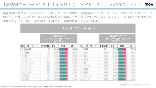 ■【言語別キーワード分析】「イタリアン・トマト」の口コミ評価は・・・?
