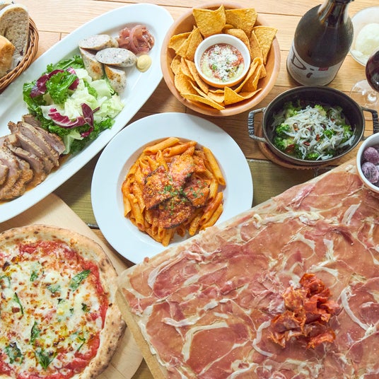 ディプントは、美味しいお料理を囲みながら、みんなでワイワイ楽しんでいただける気軽なワインの酒場です。堅苦しいルールはなく、オンからオフに切り替えられる、上質で活気あふれる居心地の良い空間をご用意しております。看板メニューは、テーブルいっぱいに広がるてんこ盛りの生ハム、カジュアルなグラスで楽しむランブルスコ。他にも、500℃の石窯オーブンで焼き上げるピッツァやお肉、パスタ、サングリアなど、バラエティ豊かなワインと食事を提供しています。