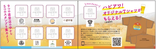 「ハピアワ!クラフトビール」9つの直営店の中から、それぞれの店舗のクラフトビールを飲むとスタンプを押してもらえます。最後にDD4Dの店舗に行き、合計で5つのスタンプを集めてオリジナルTシャツ(数量限定)がもらえます。