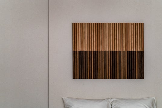 マルニ木工の家具製作過程で出た端材を、アート作品や壁材としてアップサイクルしました。本来廃棄されるはずだった素材に新たに価値や役割をあたえ空間に用いることで家具と建築を繋いでいきます。