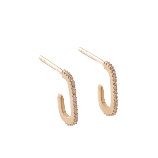 上品さと現代性の調和 ‒ 四角形が織りなすエレガンス。18Kマットゴールドの滑らかな表情とダイヤモンドの美しい輝き。