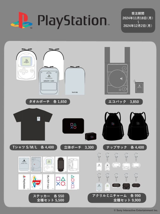 今回の企画はPlayStation(TM)と共にたくさんのお客様に愛された周辺機器をメインに、『ポケットステーション(TM)』『メモリーカード』『PSP(TM)「プレイステーション・ポータブル」』など、当時の記憶がよみがえるアイテムを日常でも使いやすいグッズにしましたー!!!