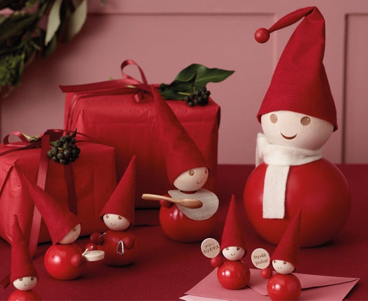 丸みを帯びたシルエットに優しい表情が愛らしい、クリスマス時期に欠かせないトントゥの置物。木のぬくもりとフェルトの帽子が温かさを演出します。