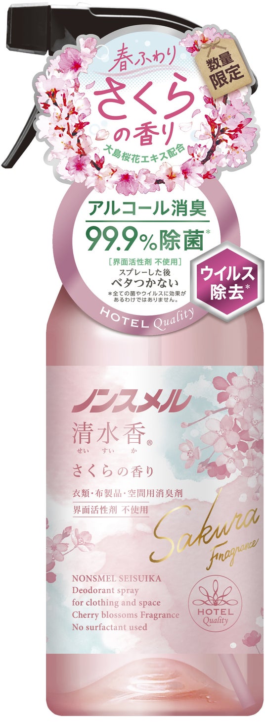 白元アース株式会社(本社:東京都足立区、社長:吉村一人)は、ホテルクオリティの衣類・布製品・空間用消臭剤「ノンスメル清水香(せいすいか)」に春限定の『さくらの香り』 を12月2日より数量限定発売いたします。