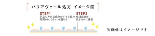 メイク膜の細かなすき間を見逃さない肌なじみ向上成分※4配合で、肌にのせるとすばやく、うるおいが肌に浸透※5します。また、保湿成分が均一に肌を保護する「バリアヴェール処方」を採用。これ1本で、うるおいを届けながら肌を守ります。