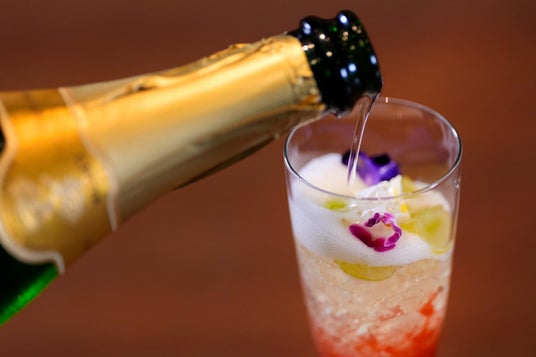 「梅マスカットロワイヤル」には仕上げに梅酒のスパークリングワインを注ぎます。