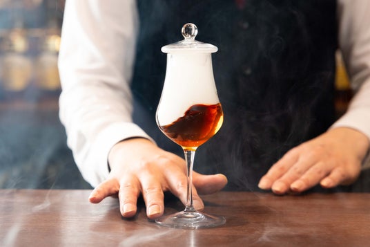 The CHOYAにヴェルモット、ドライシェリーをブレンドし、梅の木のチップを燻した煙で香りづけしたスモーキーで新しい梅酒カクテル。