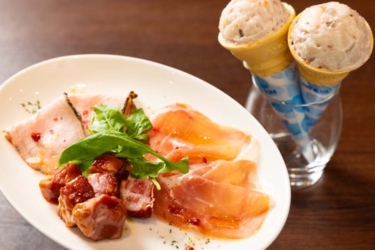 左から「シャルキュトリー3種盛り合わせ 梅コンフィチュール」、「アイスクリームな梅ポテトサラダ」