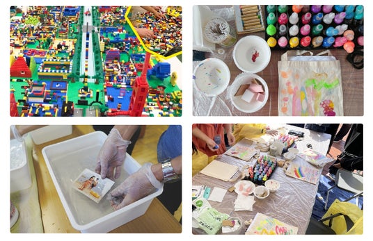 ワークショップエリアでは、子どもたちが楽しみながら学べるブロックで作る「未来の街づくり」や、手作りで自分だけの「オリジナルサコッシュ」作り。さらに災害泥に汚れがあった写真を丁寧に洗浄する特別な体験もご用意しております。