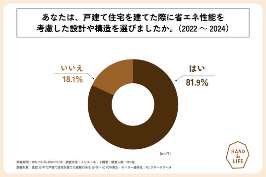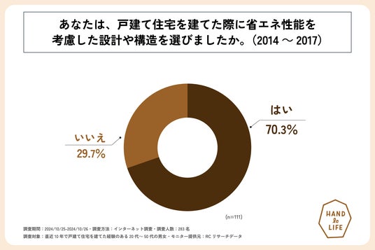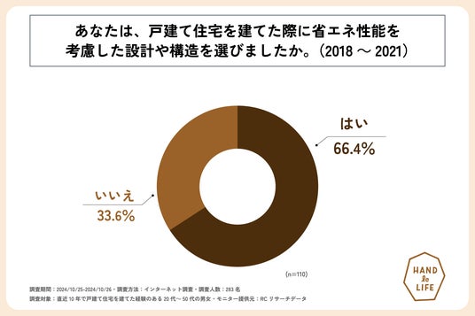直近10年で戸建て住宅を建てた20代~50代の男女の6割以上が、省エネ性能を考慮した設計や構造を選んでいる