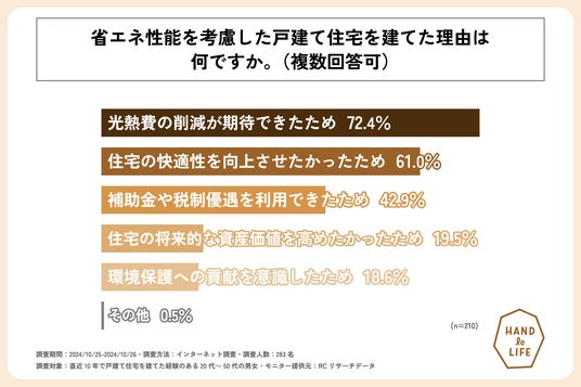省エネ性能を考慮した戸建て住宅を建てた主な理由は「経済合理性」と「快適性」