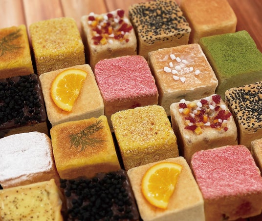 手のひら食パン純生プレミアム、練乳クリーム、牛すじカレー、北海しゅまり小倉あん、丹波黒豆抹茶、メロンパン、エッグ&チキン、ショコラ、塩バター、レーズン&くるみ、ベーコン&ゴーダチーズ