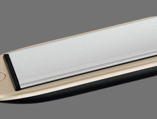 ・髪への接触面積を減らす溝付きプレートで、髪をいたわりながらスタイリング
