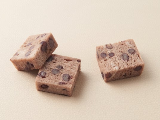 今回の製法では、強い粘りが特徴の伊勢芋を使うと日持ちは短くなるのですが、風味を優先するために、あえて伊勢芋を使って試行錯誤を続けてきたそう。結果、しっとりとなめらかな口あたりが実現しました。合わせているのは、丹波大納言小豆の鹿の子。ほどよい甘さが上品に口の中に広がります。