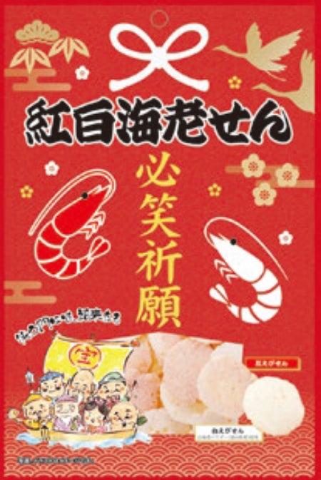 商品特徴:赤と白のえびせんをミックスさせた紅白えびせんです。