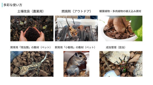 今回、ハスクチップが、飼育環境を清潔で快適に保つことができる素材である点に注目し、爬虫類や昆虫といった小動物の飼育用敷材として「ココジーズ」の名称で販売することにしました。