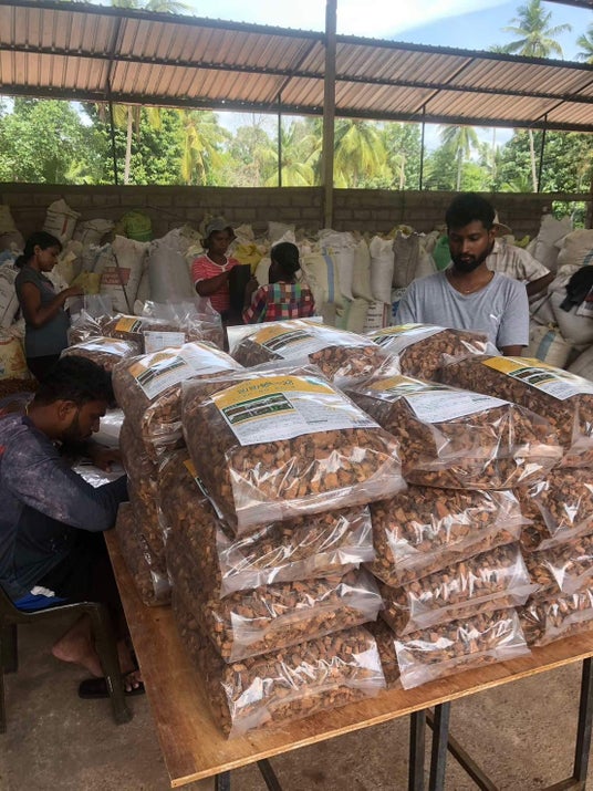 その後、テレビ業界・広告業界を経験し、2023年に再びスリランカを訪問、1ヶ月のホームステイをしました。滞在中に、ココナッツの殻が産業廃棄物として山積みになっている状況を目の当たりにして、何か利用方法がないかと考えていた時、偶然にも5年前の結婚式で出会ったスリランカ人の工場オーナーと再会し相談した結果、そこから加工や販売に向けて動き出しました。