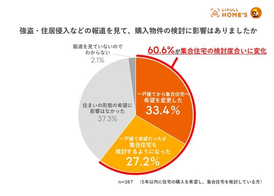 集合住宅購入検討者のうち、約6割が強盗住居侵入の報道を受け一戸建てから集合住宅への希望変更も検討20代・30代の変更意向が比較的高い結果に