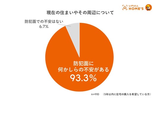 – 9割以上の人が現在の住まいの防犯面になにかしらの不安をおぼえる