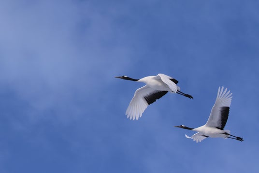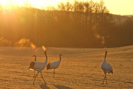 日本で繁殖する唯一のツルで、国の特別天然記念物。北海道東部を中心に生息しており、全長140cm、羽を広げると240cmにもなる、日本最大の野鳥です。かつては北海道全域に生息し、関東地方まで渡りをしていた記録がありますが、明治時代の乱獲と生息地である湿原の開発により激減し、一時は絶滅したと考えられていました。ところが、大正時代末期の1924年に釧路湿原で十数羽が再発見されたのです。地元農家がはじめた冬期の給餌などの保護活動が実り、個体数は1,900羽を超えるまで回復しました。