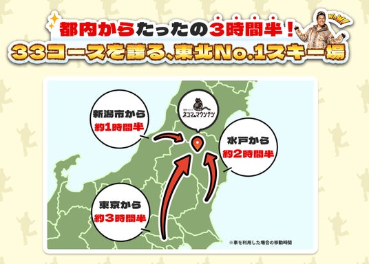 南北に広がる壮大なフィールドをもつスキー場「星野リゾート ネコマ マウンテン(福島県耶麻郡)」の、2024-25シーズンCMキャラクターにピコ太郎さんが就任しました。「PPAP」の楽曲に合わせて2つのスキー場を合体させるWEB-CMを11月より配信します。あわせてスキー場の魅力を紹介する特設ページを2024年11月20日に公開。11月30日に控えるネコマ マウンテンのオープンに向けて、スキー場を盛り上げます。