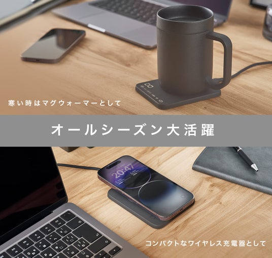寒い時にはマグカップを保温するマグウォーマーとして、普段はコンパクトなワイヤレス充電器としてオールシーズン大活躍します。