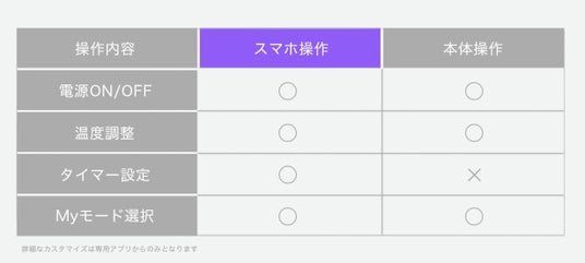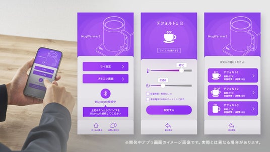 専用アプリをダウンロードすれば、スマホから電源のオンオフ、温度調整、Myモード設定に加えて、タイマー設定も可能です。デフォルトで白湯・コーヒー・スープのモード設定もあり、簡単にお使いいただけます。