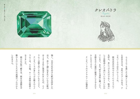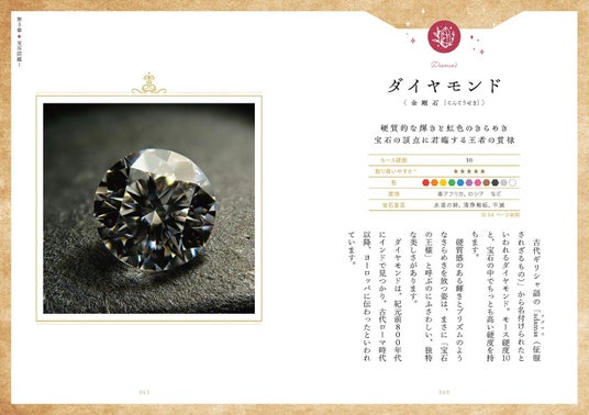 2021年末に改定された日本の誕生石を紹介する宝石図鑑ページのほか、宝石にまつわる各地の言い伝えや偉人が愛した宝石、宝石が登場する文学や絵画の紹介など、宝石を多方面から楽しめる、読み応え満点の一冊に仕上がりました。