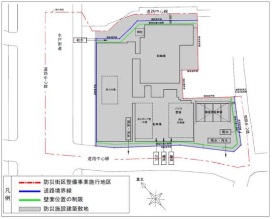 本事業は、東武スカイツリーライン(東武伊勢崎線)・東武亀戸線「曳舟」駅徒歩4分、京成押上線「京成曳舟」駅徒歩7分の地に広がる木造密集区域約2,100平方メートル を対象として進めています。老朽化した建築物を除却し、新たに公共施設や防災機能を備えた建築物、街路などを整備することで防災性の高い住環境及び都市機能の向上に貢献します。