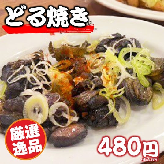 超弾力!噛めば噛むほど旨味が出る国産親鶏の炭焼きどる焼き(税込528円)お好みで柚子胡椒をつけていただくことができます。コリコリ食感がたまらない1度食べたらもう一度食べたくなる味。