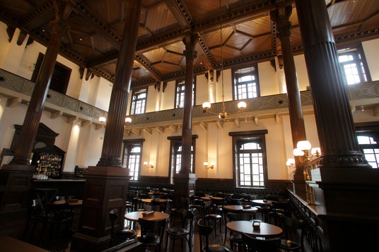 Cafe 1894明治期(1894年)に銀行営業室として利用された空間を復元したミュージアムカフェ・バー。クラシックな趣と、2層吹き抜けの高い天井が人気のお店です。