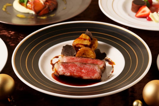 メインのお魚料理はオマール海老のポワレに3種のソースを添え、味の変化をお楽しみいただけます。メインのお肉料理は和牛サーロインのステーキ。上質なお肉を、絶妙な焼き加減とトリュフバター入りのソースでご堪能いただけます。