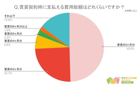 賃貸契約時に支払える費用総額は家賃の2ヶ月分が半数弱