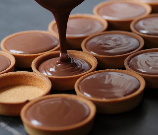 軽やかな焼き加減にこだわったサクサクのタルト生地の中には、トロッととろける生チョコレートのクリームをたっぷりと流し込んでいます。