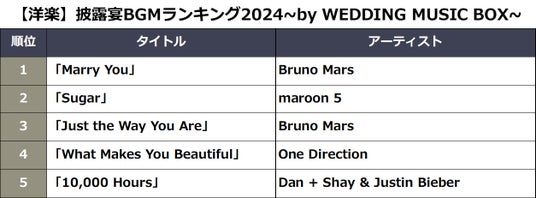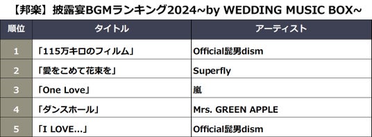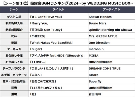 「披露宴BGMランキング2024 ~by WEDDING MUSIC BOX~」ランキング詳細