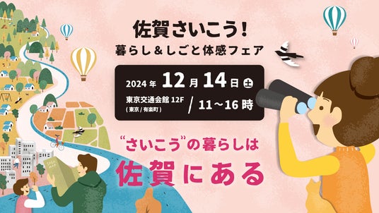 佐賀県は、2024年12月14日(土)に、有楽町の東京交通会館で、大規模移住イベント「佐賀さいこう!暮らし&しごと体感フェア ~“さいこう”の暮らしは佐賀にある~」を開催します。自治体のほか県内の企業も多数出展し、佐賀県での暮らしとしごとが一度に相談できるワンストップの大相談会です。佐賀県だからこそ実現できる質の高い暮らしと仕事の情報と心優しい佐賀人に会いに来てください。