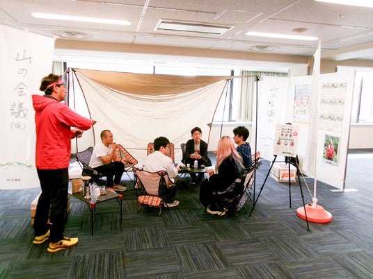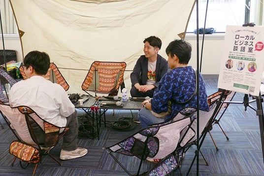 タープにキャンプチェアーとコーヒー。リラックスムードを演出した会場です。佐賀県から参加した方と首都圏在住者の間で会話が弾みました。