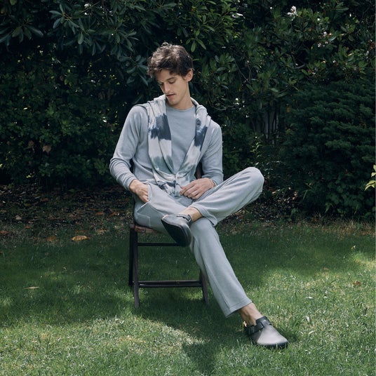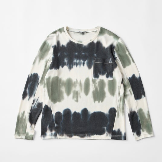両面起毛で高い保温機能を持つ Loft は、秋冬を代表するラウンジウェアの人気コレクション。ふんわりと軽量で柔らかな生地は冬のお出かけにも、家でくつろぐ際にも活躍するアイテム。今シーズンは初めて表情豊かな絞り染めが登場。手絞りで柄の出方が一点ごとに違うオンリーワンの存在です。異なる糸を組み合わせながら絞り染めでもTani独特の柔らかな風合いを実現しました。