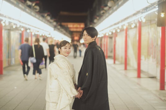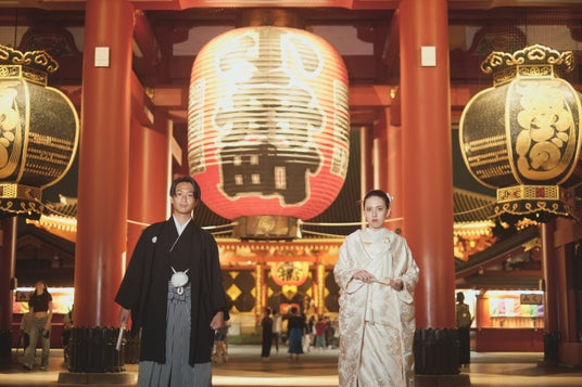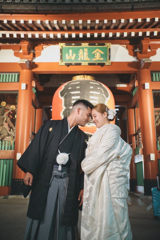 ライトアップされた浅草寺の雷門や仲見世商店街を背景にした写真は、特別感があり、おふたりだけの特別な思い出をさらに華やかに彩ります。
