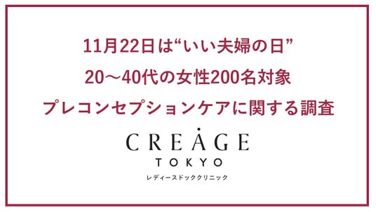 女性のための人間ドック「クレアージュ東京 レディースドッククリニック」(場所:東京都 千代田区有楽町)は、11/22の「いい夫婦の日」にちなんで、妊娠・出産のための身体の準備を意味する「プレコンセプションケア」に関するアンケート調査を行いました。