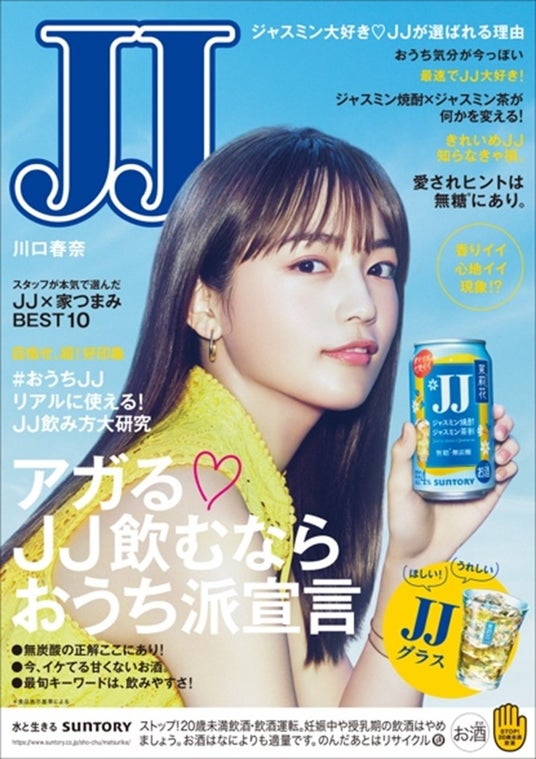 そして、“JJ同盟”のサントリーと光文社は共同アクションを実施いたします。サントリーからはCanCamの裏表紙や他誌面にて、雑誌『JJ』を思わせる、表紙風広告を掲載することを決定いたしました。雑誌JJ風広告では、表紙モデルに川口春奈さんを起用し、左上に大きく雑誌JJを彷彿とさせる「JJ」の文字を掲出しました。かつて雑誌を手に取っていただいた方がイメージしやすいビジュアルを表現いたしました。