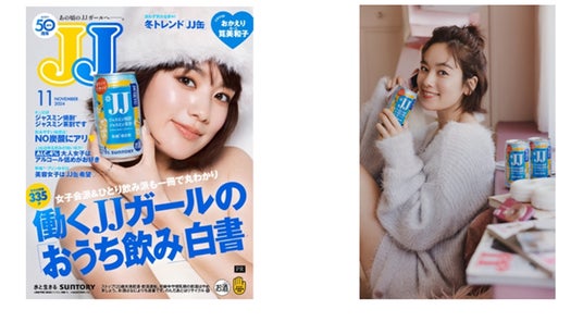 サントリー(株)が2024年4月に全国で発売した「茉莉花(まつりか)〈ジャスミン茶割・JJ(ジェージェー)〉缶」(以下JJ缶)は、(株)光文社の女性ファッション雑誌『JJ』と“JJ同盟”を結成し、共同アクションを実施いたします。株式会社小学館の発行する雑誌CanCam1月号(11月22日発売号)の裏表紙に光文社の雑誌『JJ』をモチーフにした表紙風広告を掲載。また、「ViVi」「CLASSY」「STORY」「VERY」も含めた女性ファッション&ライフスタイル雑誌5誌の“JJ広告”を展開いたします。