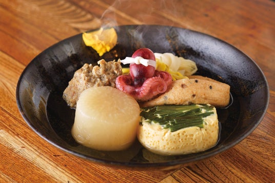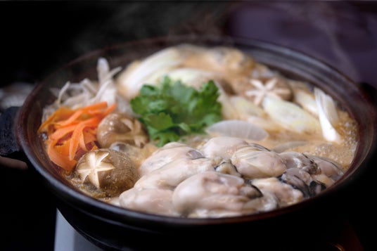 おでん、カキ鍋、寄せ鍋、すき焼きといった鍋料理、寿司、帆立バター焼き、寒ブリのお刺身。