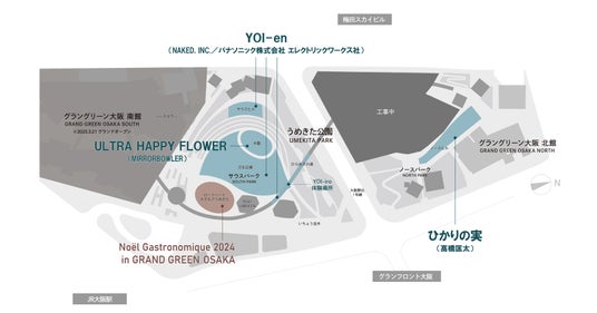 1.YOI-en ~誰もが温かい気持ちになれる冬の広場~うめきた公園をグラングリーン大阪のMIDORIにちなんだライトアップで彩り、心温まる空間をご提供します。ひらめきの道から来訪者のスマートフォンで計12パターンの演出を操作する体験型コンテンツYOI-iroもお楽しみいただけます。