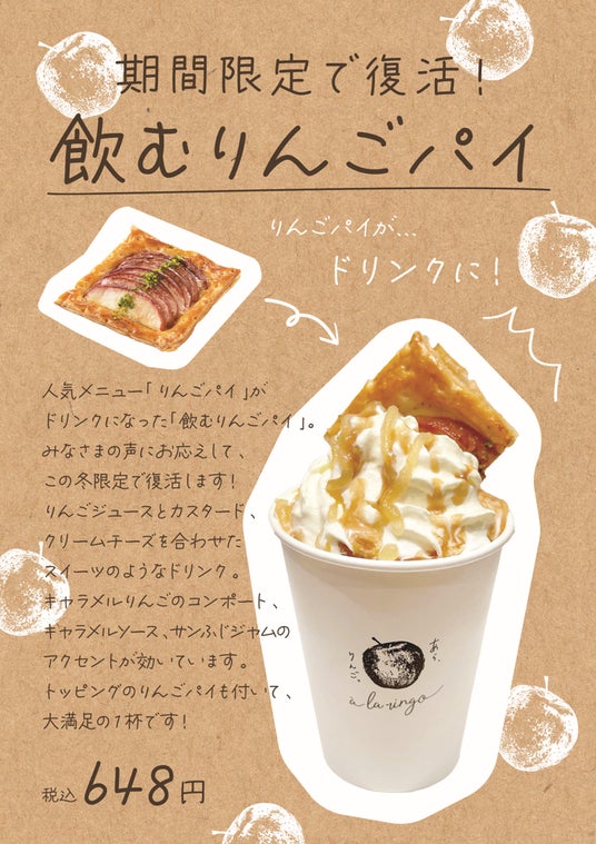 寒い冬にぴったりのホットドリンク「飲むりんごパイ」648円(税込)